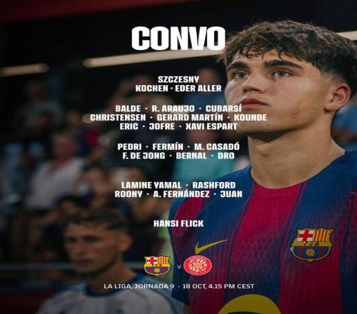 巴萨本轮西甲名单:亚马尔、费尔明伤愈归队复出在即
